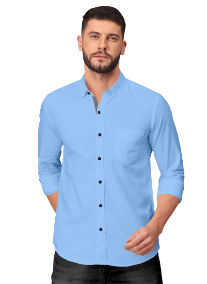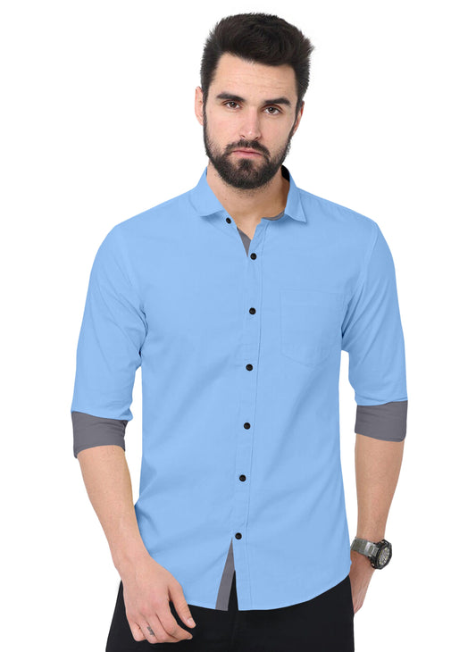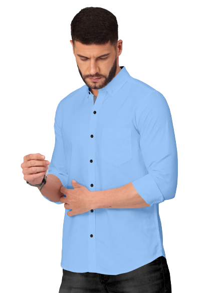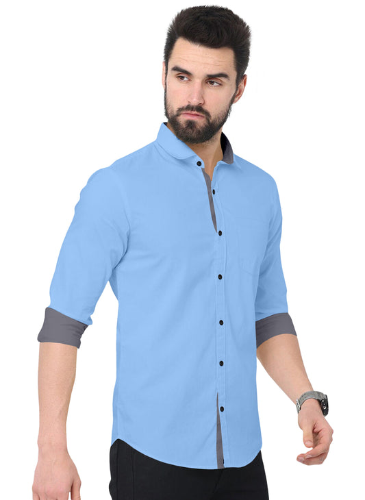 Men's Solid Plain Design Slim Fit Sky Blue Cotton Shirt