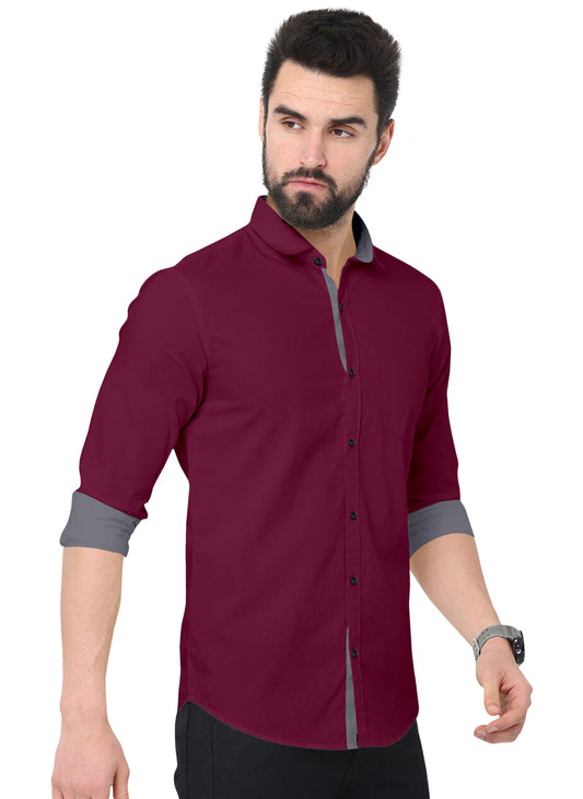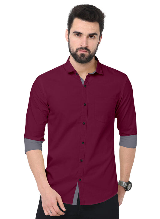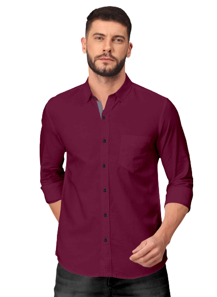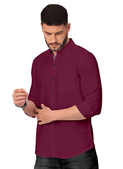 Men's Solid Plain Design Slim Fit Wine Cotton Shirt
