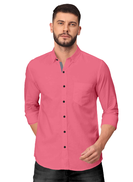 Men's Solid Plain Design Slim Fit Pink Cotton Shirt