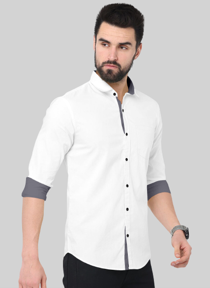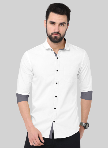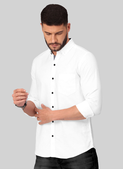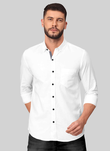 Men's Solid Plain Design Slim Fit White Cotton Shirt