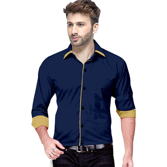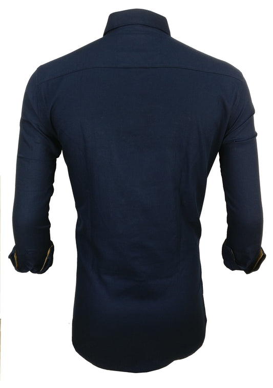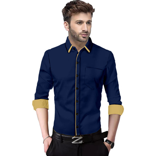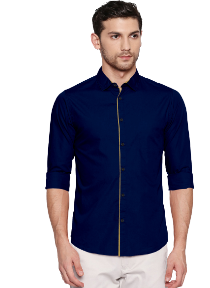 Men's Liner Design Slim Fit Navy Blue Cotton Shirt