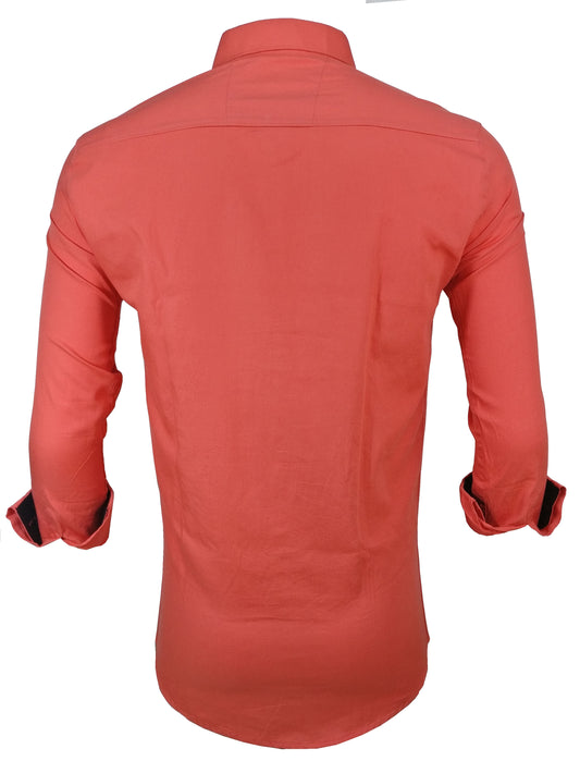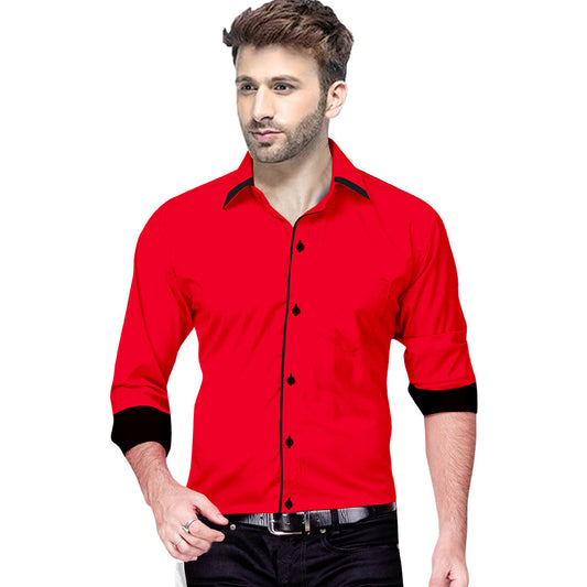 Men's Liner Design Slim Fit Red Cotton Shirt