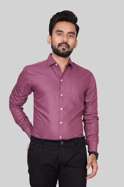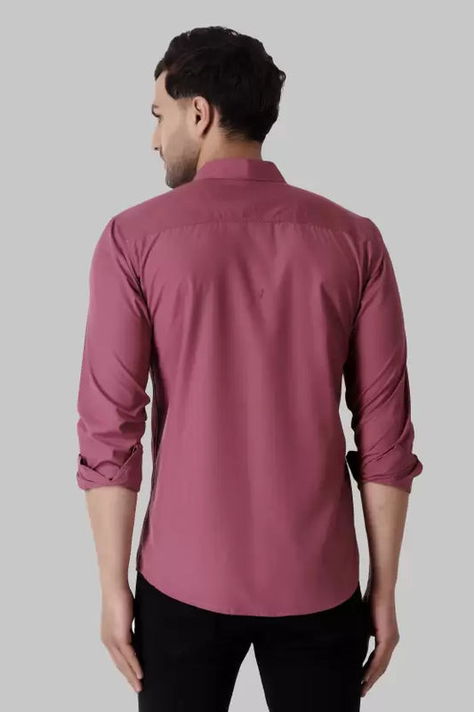 Men's Regular Fit Solid Spread Collar Casual Magenta Shirt