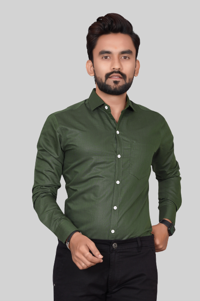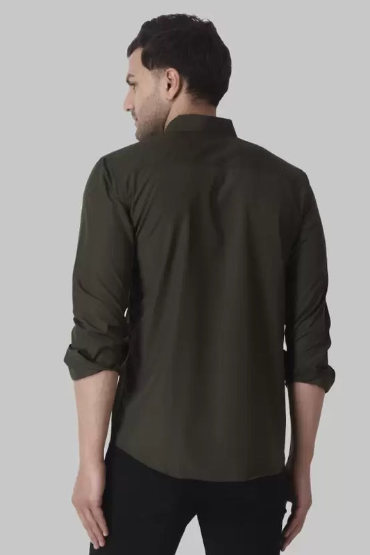 Men's Regular Fit Solid Spread Collar Casual Mehndi Green Shirt