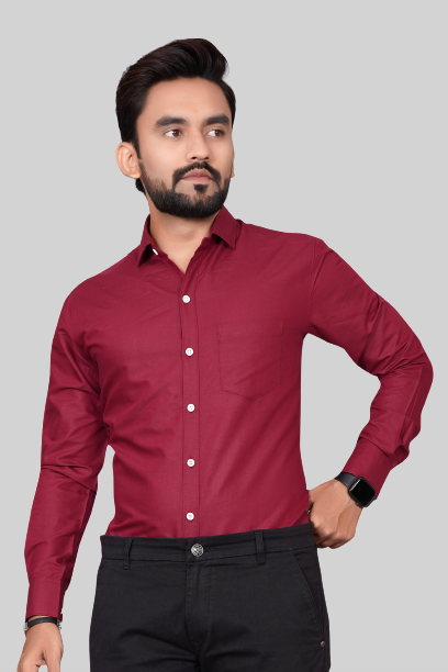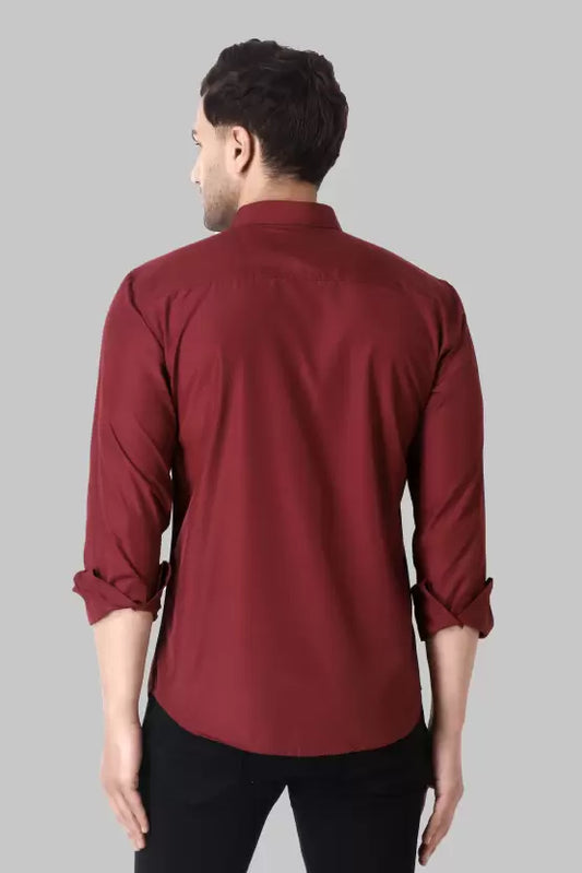 Men's Regular Fit Solid Spread Collar Casual Maroon Shirt