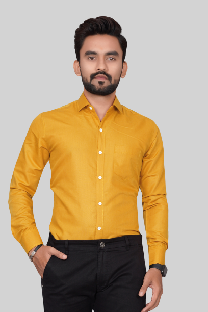 Men's Regular Fit Solid Spread Collar Casual Musterd Shirt