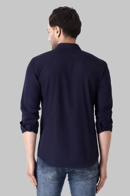 Men's Regular Fit Solid Spread Collar Casual Navy Blue Shirt