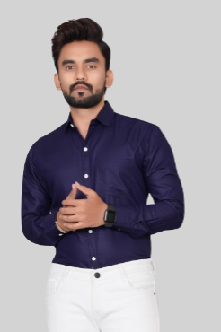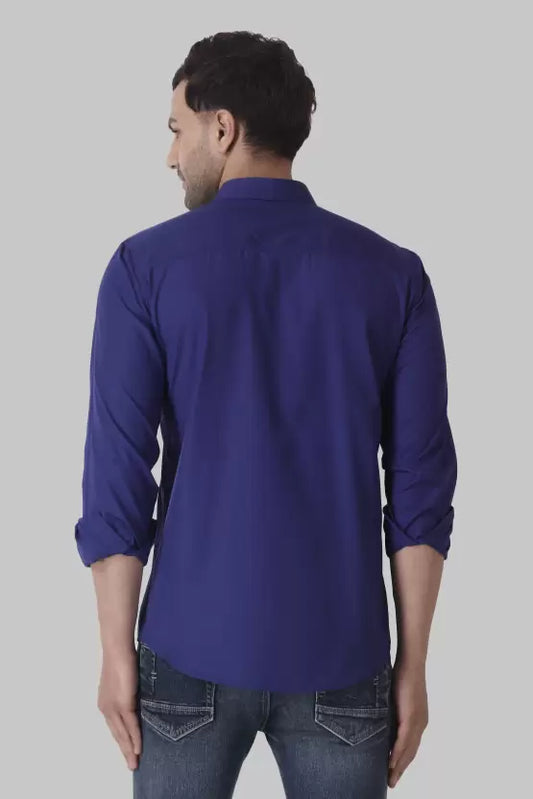 Men's Regular Fit Solid Spread Collar Casual Royal Blue Shirt