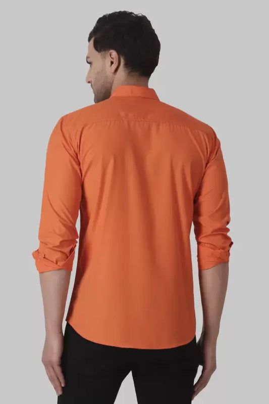Men's Regular Fit Solid Spread Collar Casual Orange Shirt