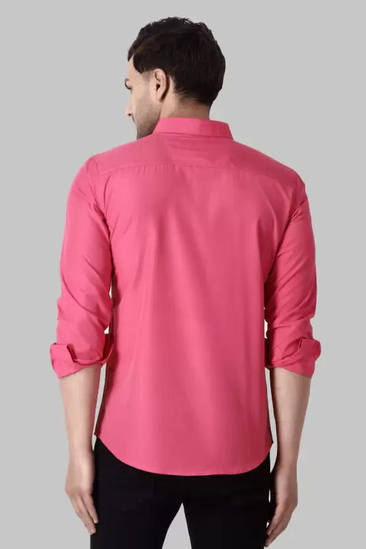 Men's Regular Fit Solid Spread Collar Casual Pink Shirt