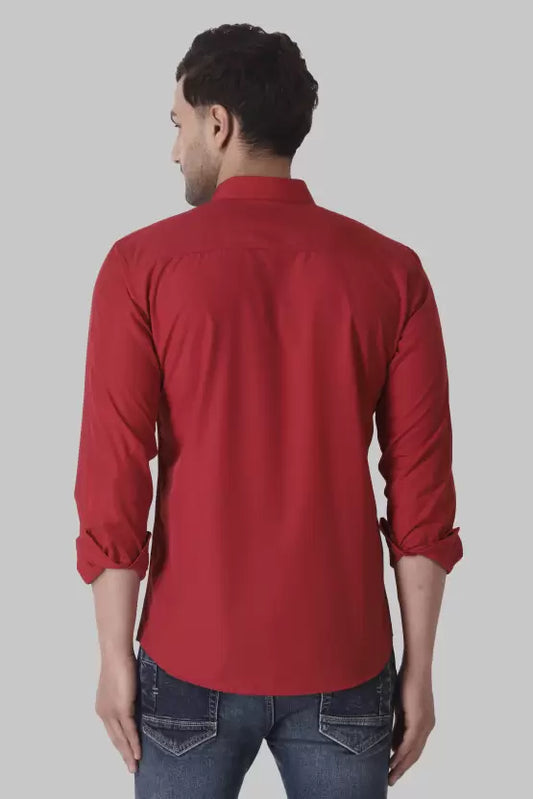 Men's Regular Fit Solid Spread Collar Casual Red Shirt