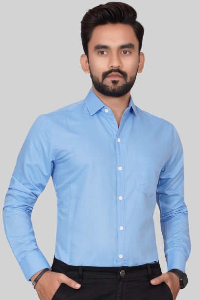 Men's Regular Fit Solid Spread Collar Casual SKY Blue Shirt