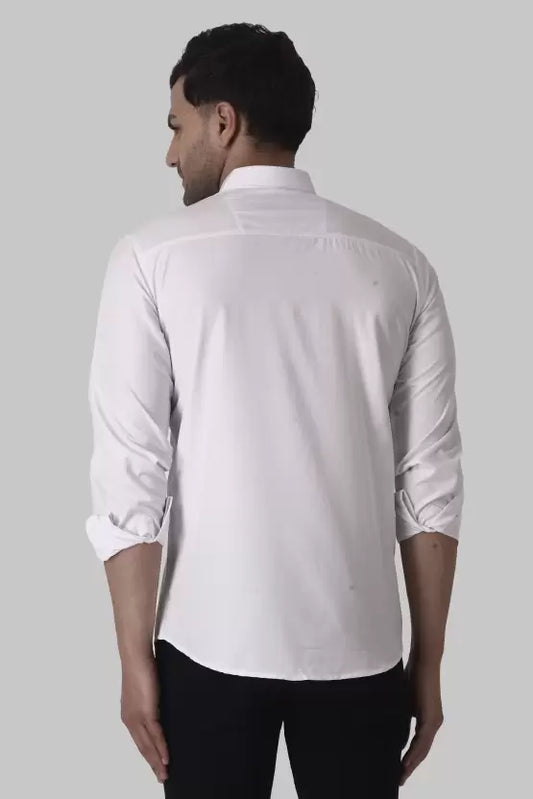 Men's Regular Fit Solid Spread Collar Casual White Shirt