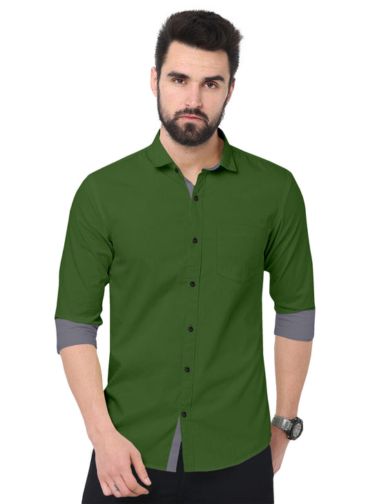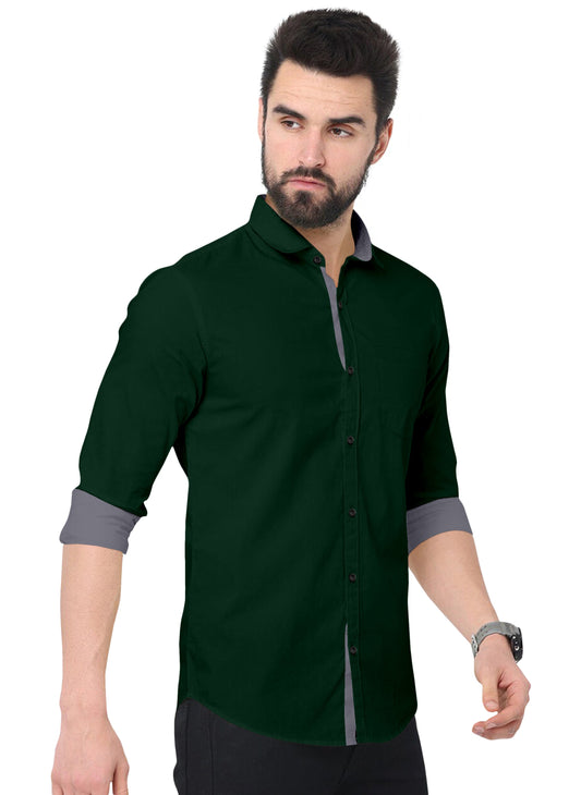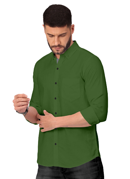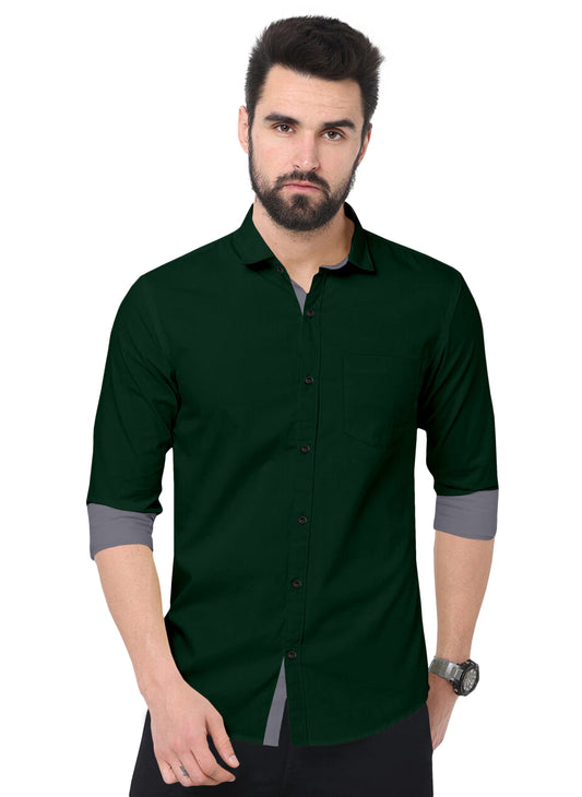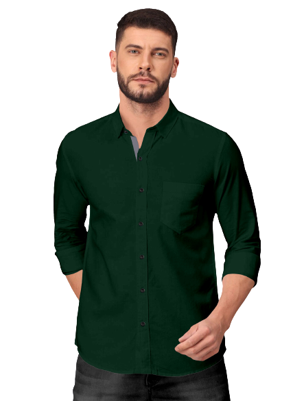 Men's Solid Plain Design Slim Fit Bottle Green Cotton Shirt