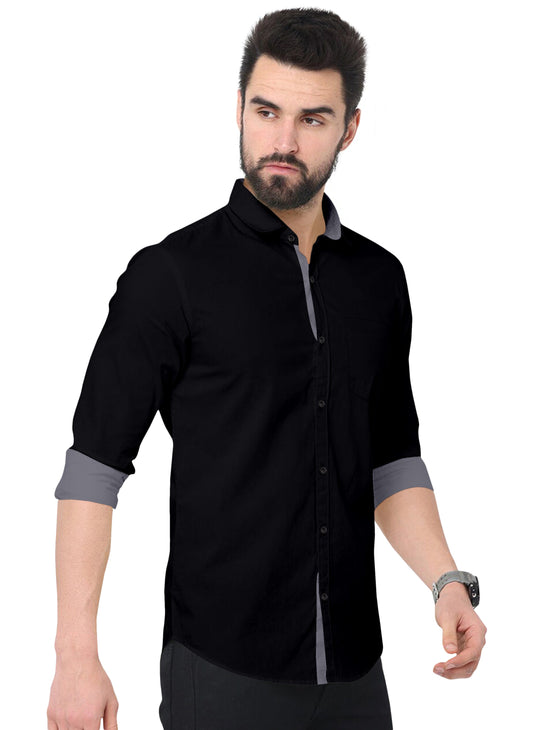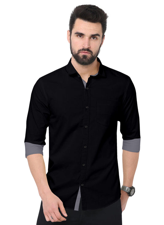 Men's Solid Slim Fit Cotton Double Button Black Shirt