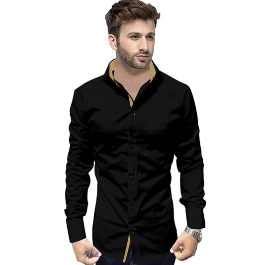 Men's Solid Plain Design Slim Fit Black Cotton Shirt