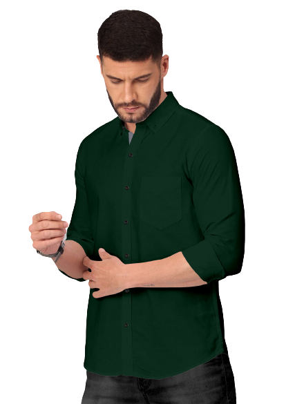 Men's Solid Plain Design Slim Fit Bottle Green Cotton Shirt
