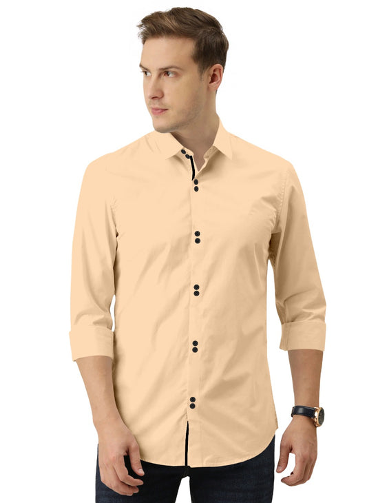 Men's Solid Slim Fit Cotton Double Button Beige Shirt