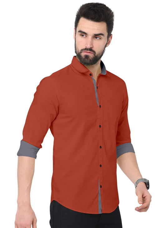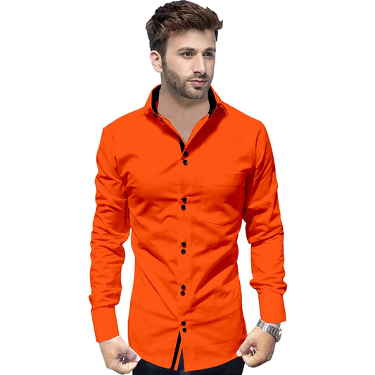 Men's Solid Plain Design Slim Fit Orange Cotton Shirt