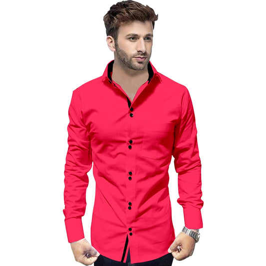 Men's Solid Slim Fit Cotton Double Button Dark Pink Shirt