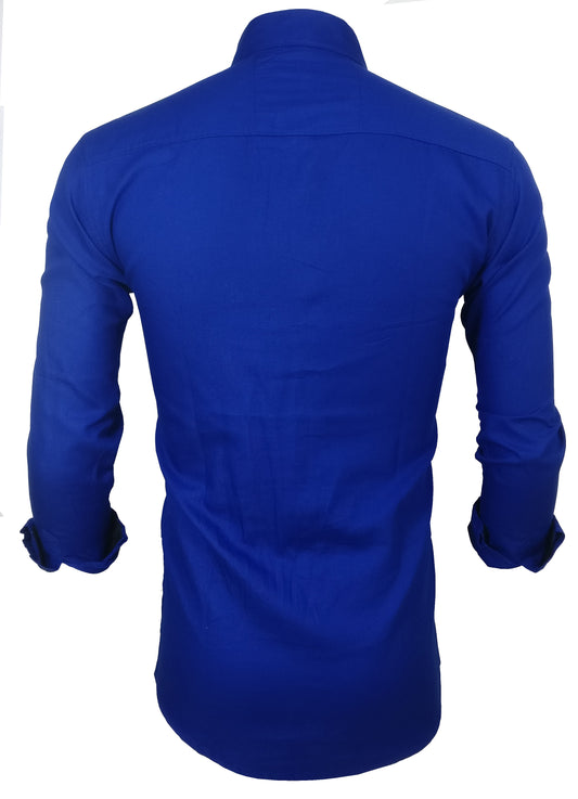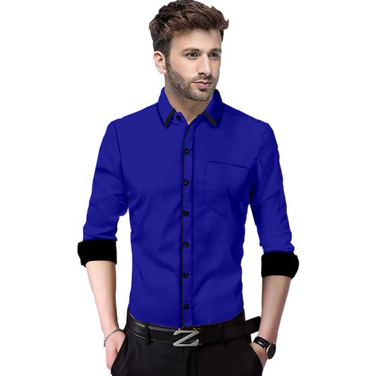 Men's Liner Design Slim Fit Royel Blue Cotton Shirt