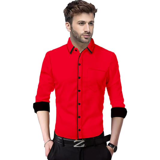 Men's Liner Design Slim Fit Red Cotton Shirt