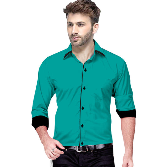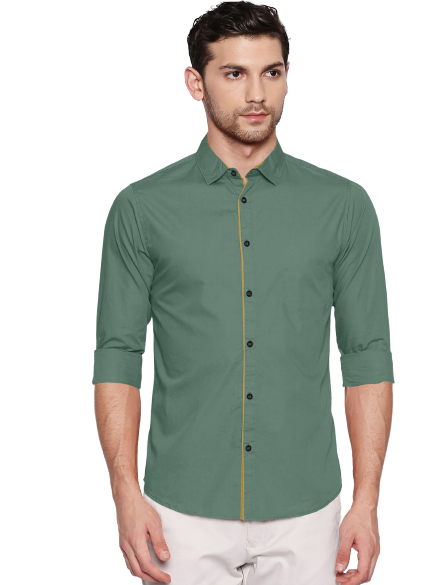 Men's Liner Design Slim Fit Dark Green Cotton Shirt