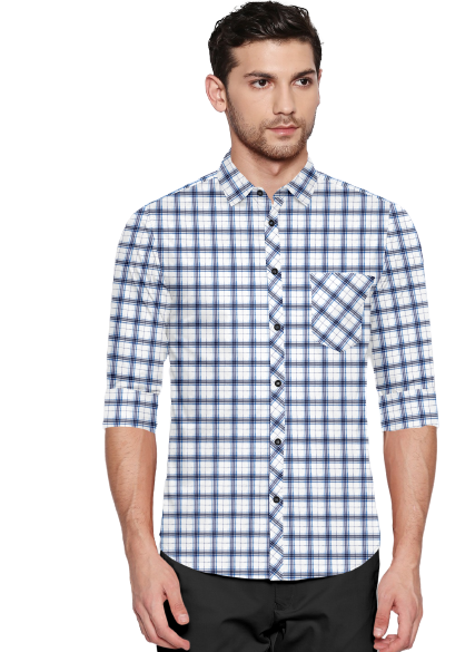 Men's Checkers Slim Fit Dark Blue Cotton Shirt