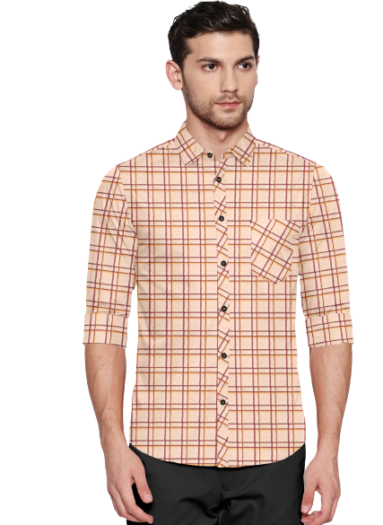 Men's Checkers Slim Fit Brown Cotton Shirt