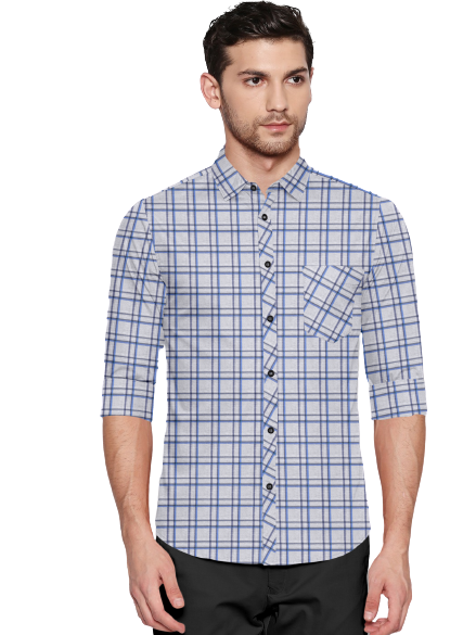 Men's Checkers Slim Fit Light Grey Cotton Shirt