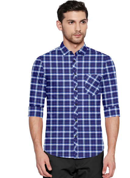 Men's Checkers Slim Fit Dark Blue Cotton Shirt