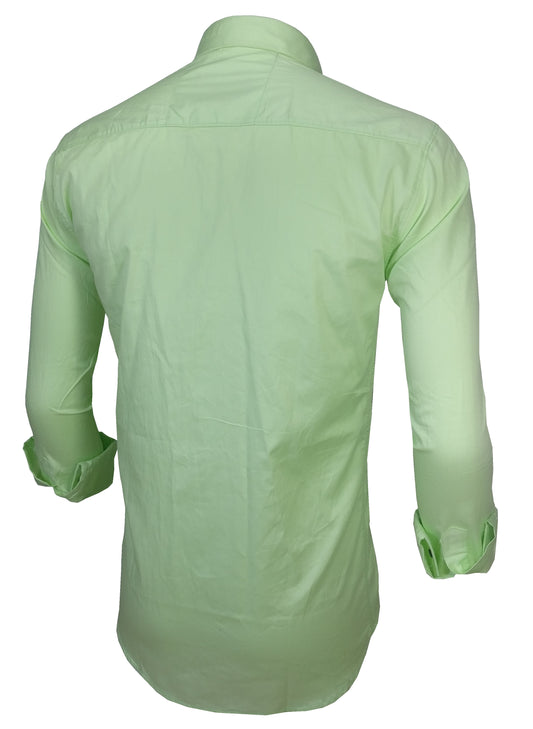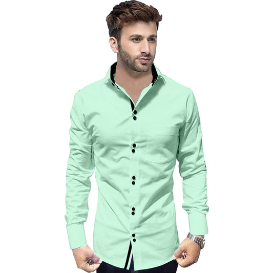Men's Solid Slim Fit Cotton Double Button Light Green Shirt