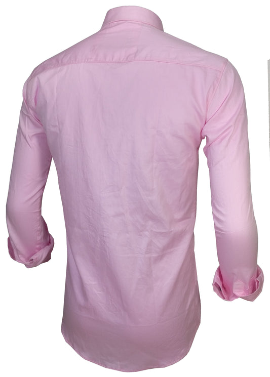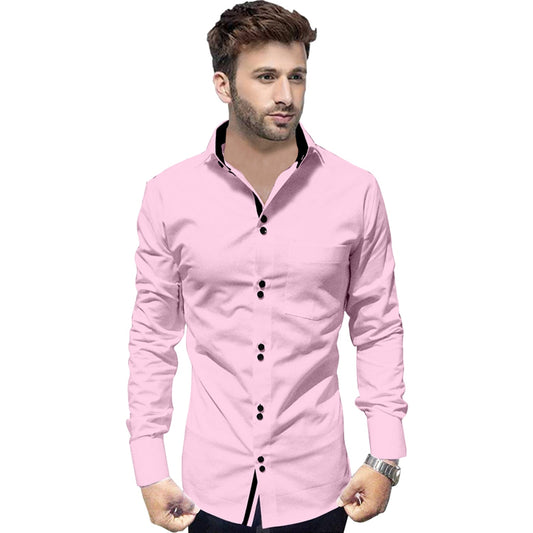 Men's Solid Slim Fit Cotton Double Button Light Pink Shirt