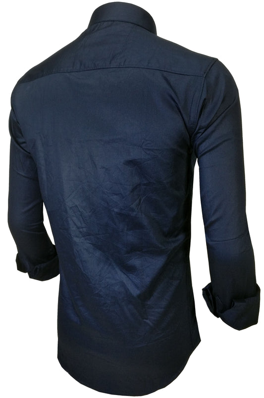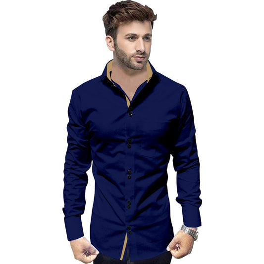 Men's Solid Slim Fit Cotton Double Button Navy Blue Shirt