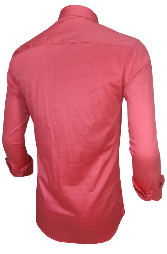 Men's Solid Slim Fit Cotton Double Button Dark Pink Shirt