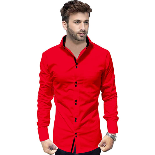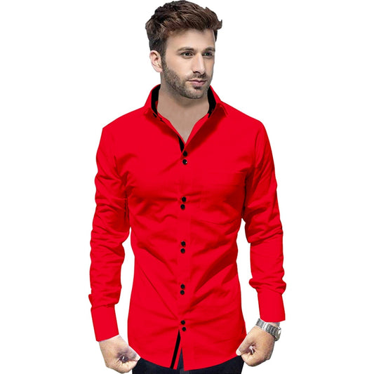 Men's Solid Slim Fit Cotton Double Button Red Shirt