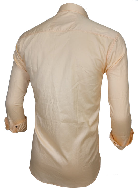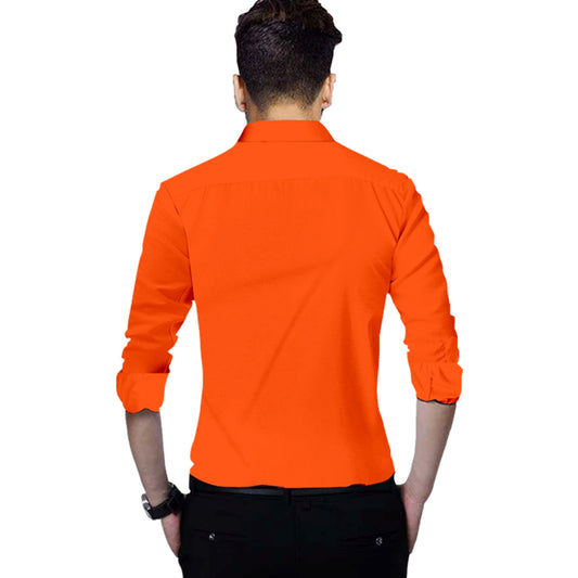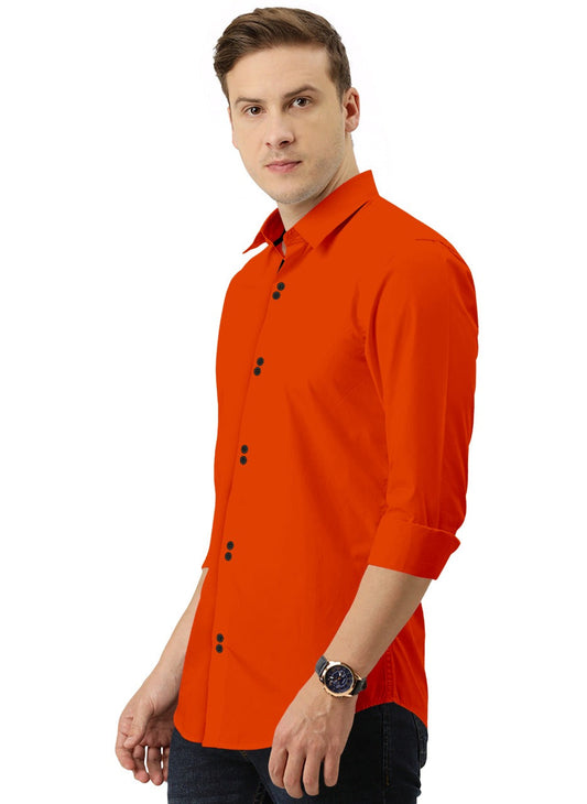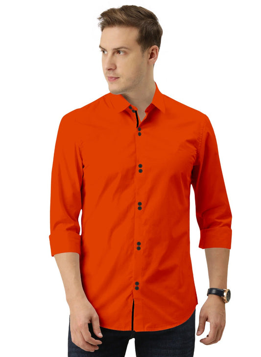 Men's Solid Slim Fit Cotton Double Button Orange Shirt