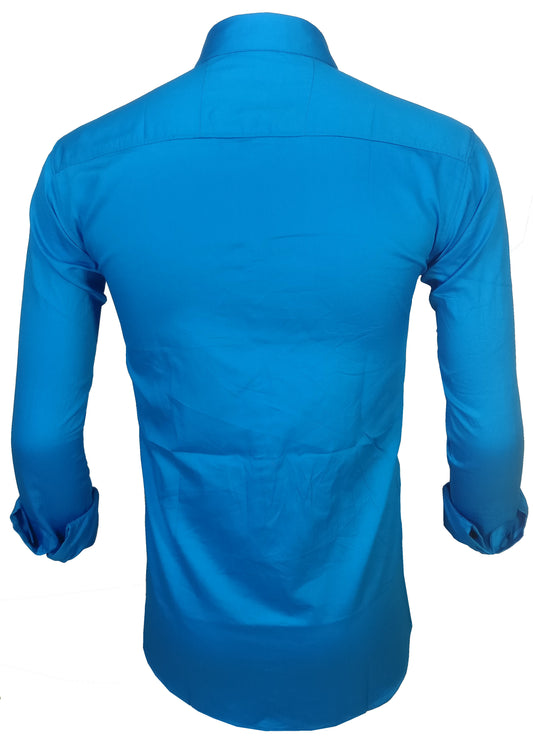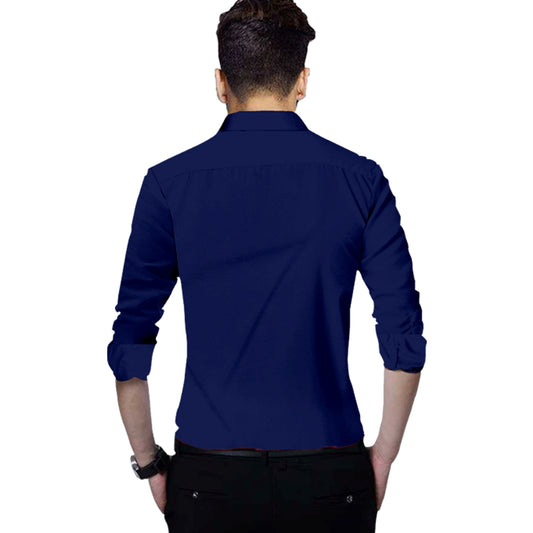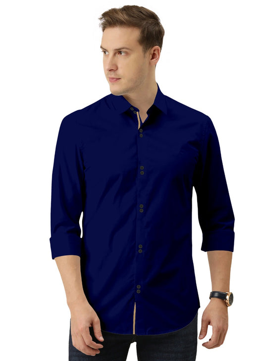 Men's Solid Slim Fit Cotton Double Button Dark Blue Shirt