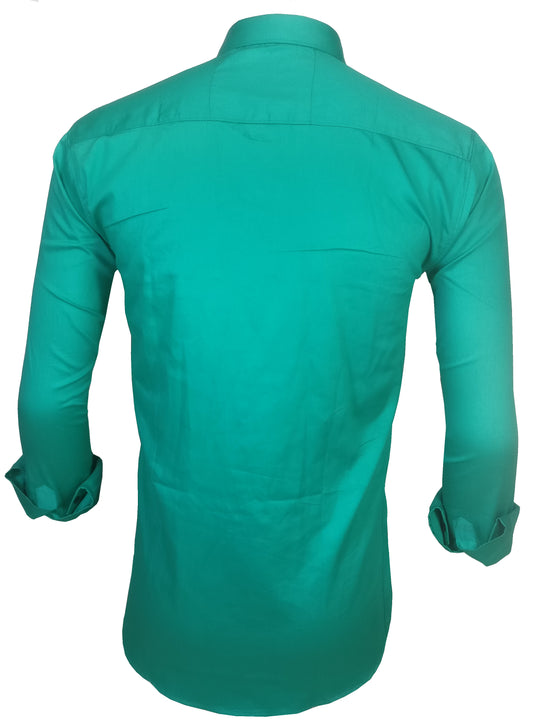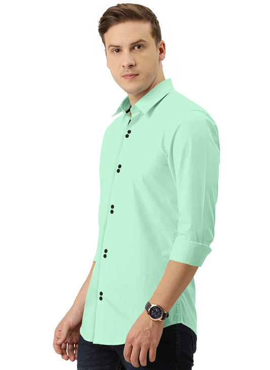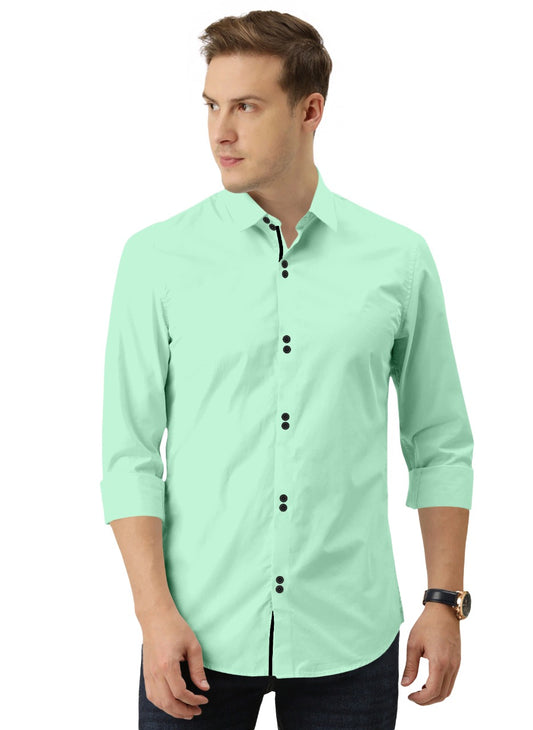 Men's Solid Slim Fit Cotton Double Button Light Green Shirt