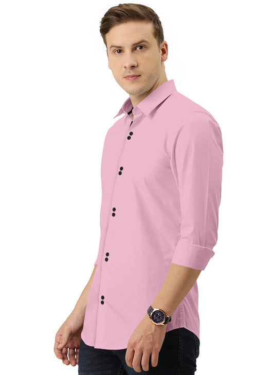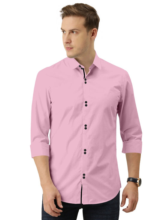Men's Solid Slim Fit Cotton Double Button Light Pink Shirt
