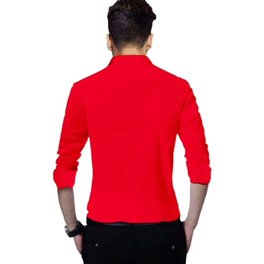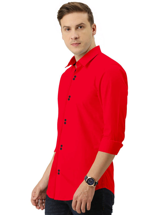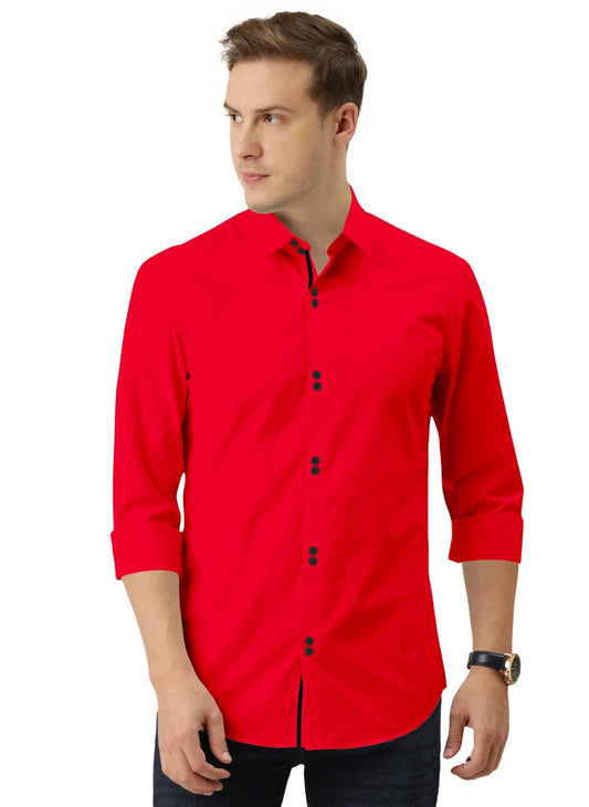 Men's Solid Slim Fit Cotton Double Button Red Shirt