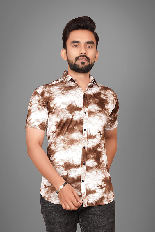 SUR-T Men Regular Fit Dyed/Ombre Spread Collar Casual Brown Shirt