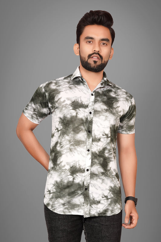 SUR-T Men's Regular Fit Printed Spread Collar Casual Mehndi Green Shirt