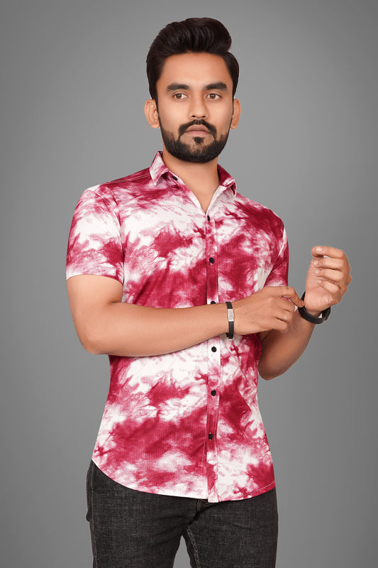 SUR-T Men's Regular Fit Printed Spread Collar Casual Red Shirt