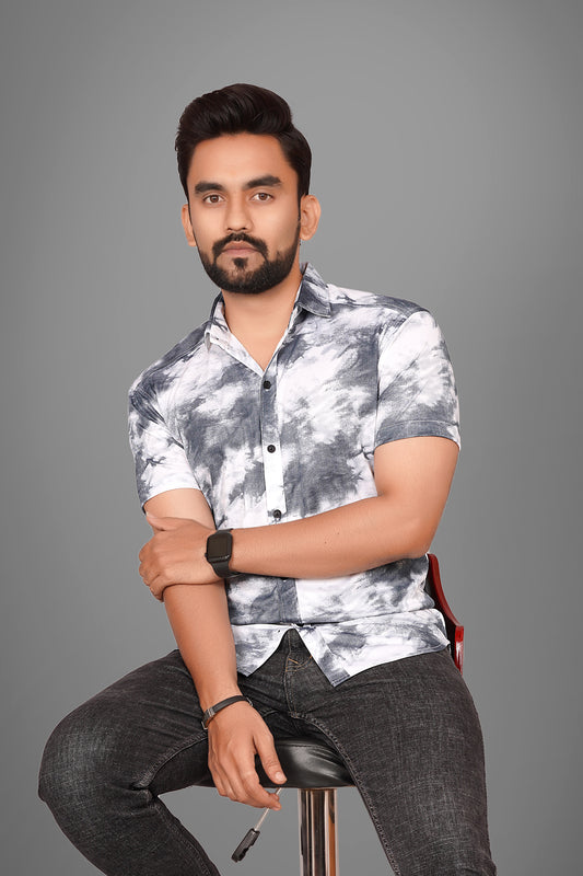 SUR-T Men Regular Fit Dyed/Ombre Spread Collar Casual Steel Grey Shirt