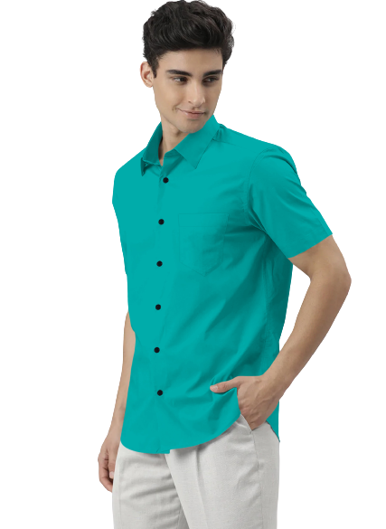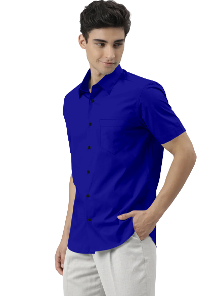 Men's Solid Slim Fit Cotton Half Sleeves Roye Blue Shirt