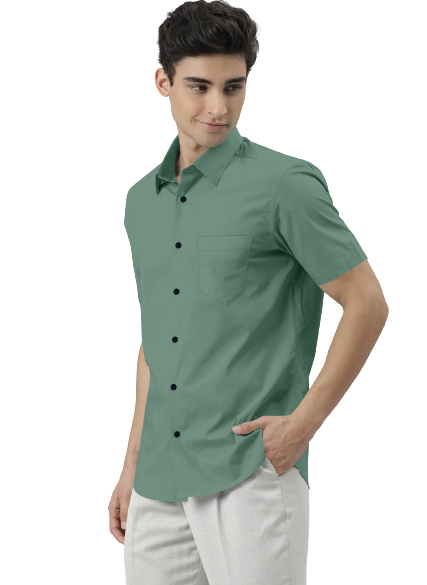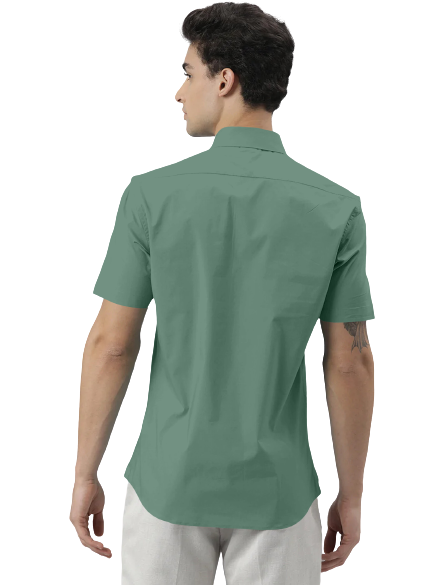 Men's Solid Slim Fit Cotton Half Sleeves Dark Green Shirt
