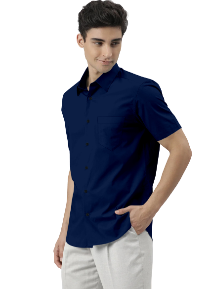 Men's Solid Slim Fit Cotton Half Sleeves Navy Blue Shirt