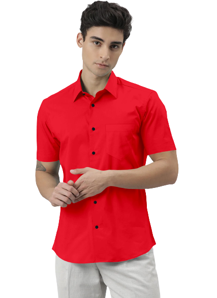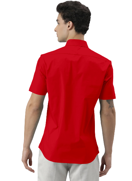 Men's Solid Slim Fit Cotton Half Sleeves Red Shirt