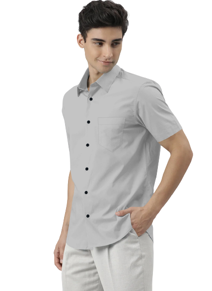 Men's Solid Slim Fit Cotton Half Sleeves Silver Shirt